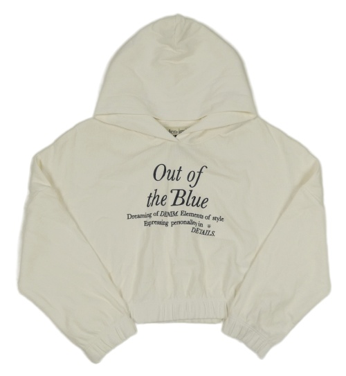 Bílá crop žebrovaná mikina s nápisem a kapucí