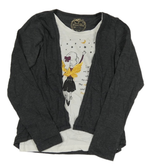 Tmavošedý melírovaný cardigan se všitým bílým tričkem s holčičkou zn