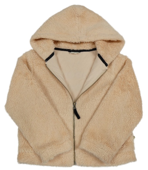 Meruňková kožešinová podšitá propínací mikina s kapucí