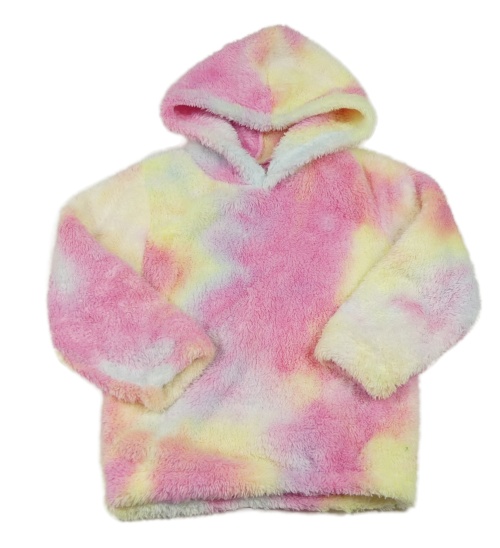 Růžovo-žluto-modrá chlupatá mikina s kapucí