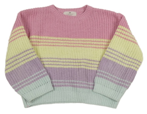 Růžovo-citronovo-fialovo-světlemodrý žebrovaný žinylkový oversize svetr H&M