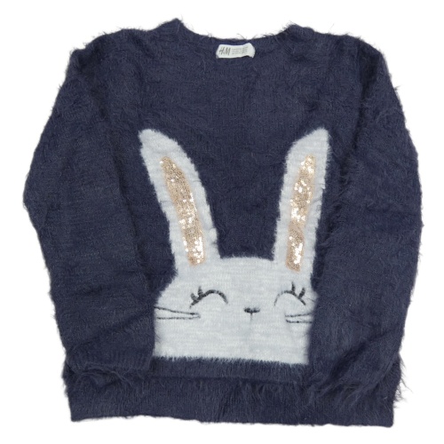 Tmavomodrý chlupatý svetr s králíkem H&M