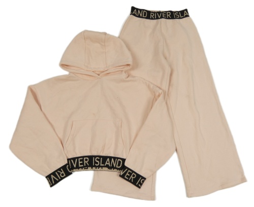 2Set - Světlebroskvovo-černá oversize crop mikina s logy a kapsou a kapucí + široké tepláky RIVER ISLAND