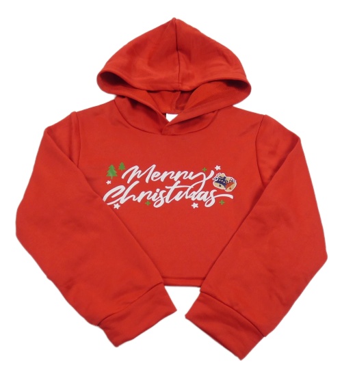 Červená crop mikina s nápisem a kapucí