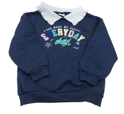 Tmavomodrá mikina s nápisy a bílým límečkem Y.F.K.