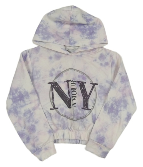 Bílo-lila batikovaná crop mikina s nápisem s kamínky a kapucí Matalan