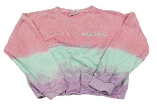 Růžovo-světlemodro-růžová batikovaná crop mikina s nápisem Infinity