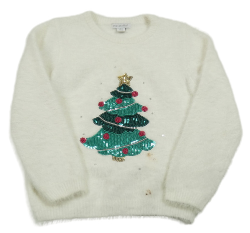 Smetanový chlupatý svetr se stromkem z flitrů Primark