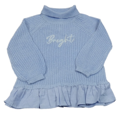 Modrý svetr s nápisem a volánkem