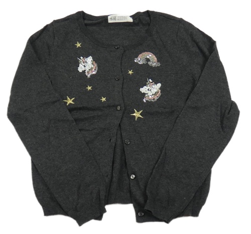 Tmavošedý propínací svetr s obrázky z flitrů H&M