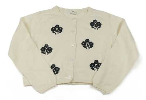 Smetanový propínací crop svetr s kytičkami H&M