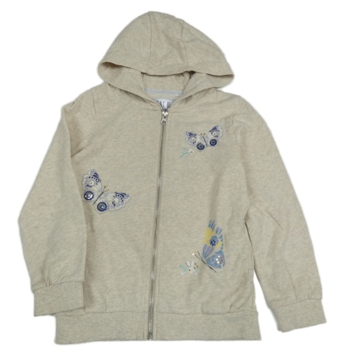 Světlebéžová melírovaná propínací mikina s motýly a kapucí Tu