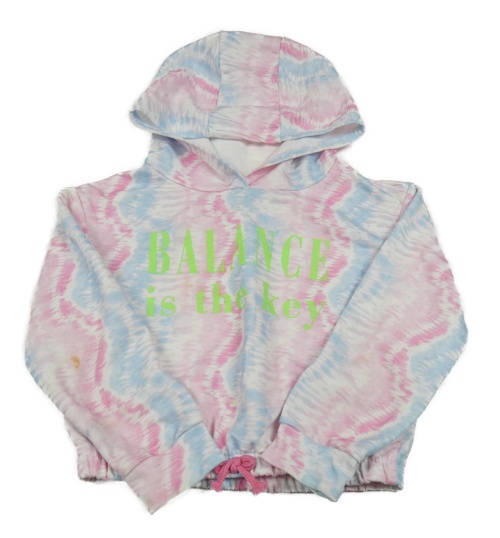 Růžovo-modro-bílá batikovaná crop mikina s nápisy a kapucí LC WaIKIKI