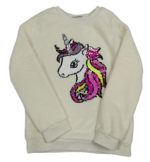 Smetanová plyšová mikina s jednodožcem z flitrů H&M