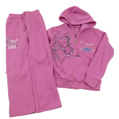 2Set - Tmavorůžová propínací teplá mikina s dívkou a nápisy a flitry a kapucí + tepláky