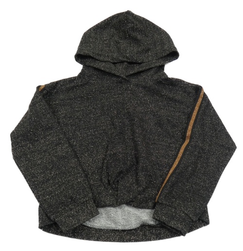 Černo-zlatá melírovaná crop mikina s pruhy a překřížením a kapucí RESERVED