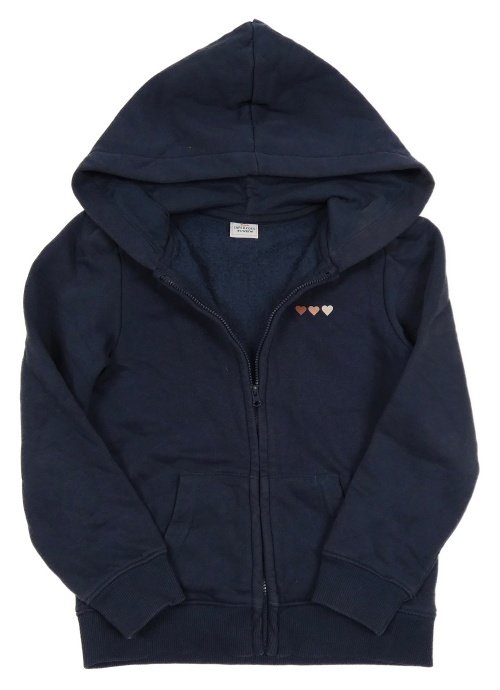 Tmavomodrá propínací mikina se srdíčky a kapucí