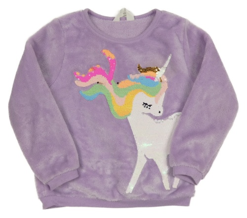 Lila chlupatá mikina s jednorožcem z překlápěcích flitrů H&M