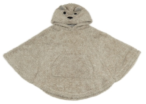Béžovo-bílé melírované chlupaté třpytivé mikinové pončo s kapucí - medvěd