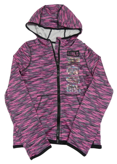 Růžovo-šedo-černá melírovaná funkční sportovní propínací mikina s nápisy a kapucí ERGEENOMIXX