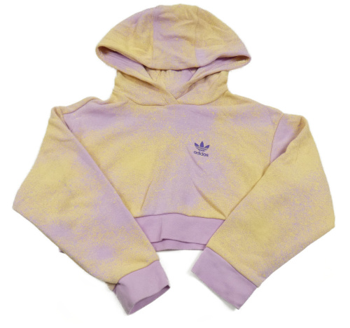 Fialovo-žlutá crop mikina s logem a kapucí Adidas
