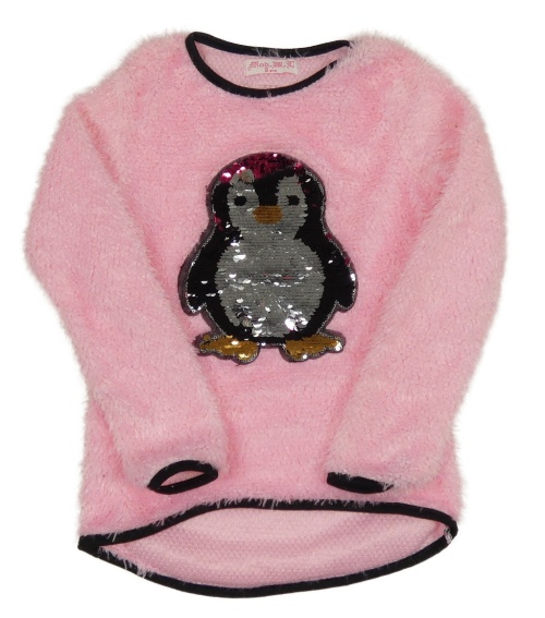 Růžová chlupatá třpytivá mikina s tučňákem z flitrů