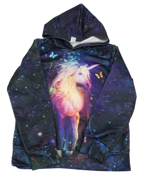 Barevná vzorovaná mikina s jednorožcem a kapucí