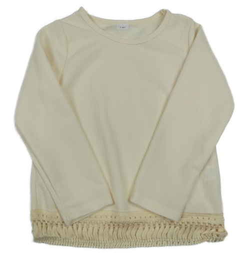Smetanové žebrované mikinotriko s třásměmi