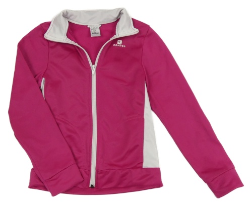 Tmavorůžovo-bílá sportovní funkční propínací mikina s logem Domyos