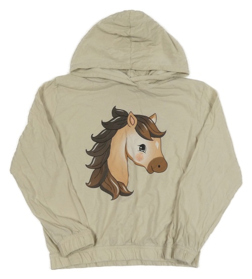 Světlebéžová slabá mikina s koníkem a kapucí dopodopo