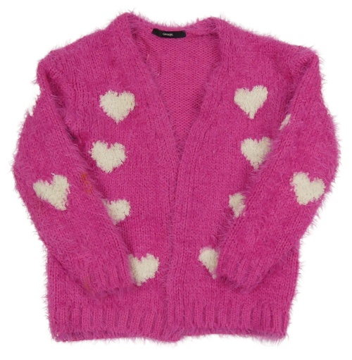 Fuchsiový chlupatý svetrový cardigan se srdíčky George