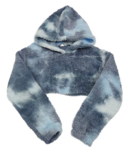 Šedomodro-světlemodro-bílá batikovaná plyšová crop mikina s kapucí Shein