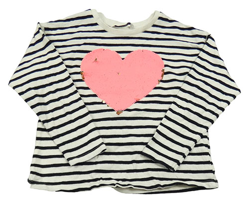 Bílo-černé pruhované mikinoko se srdcem z překlápěcích flitrů George