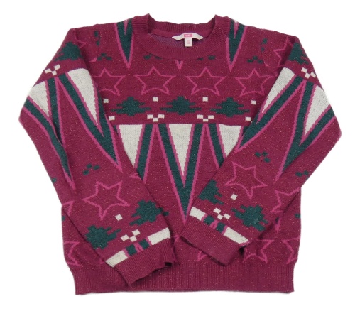 Vínovo-tmavozelený vzorovaný třpytivý svetr WE