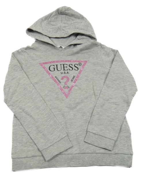 Šedá melírovaná mikina s logem a kapucí GUESS