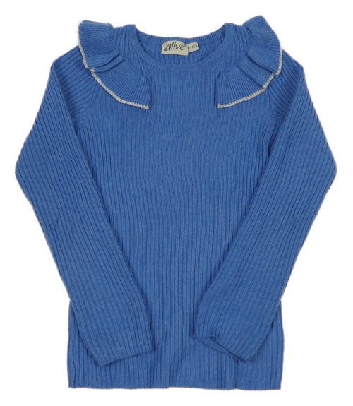 Modrý žebrovaný svetr s volánky Alive