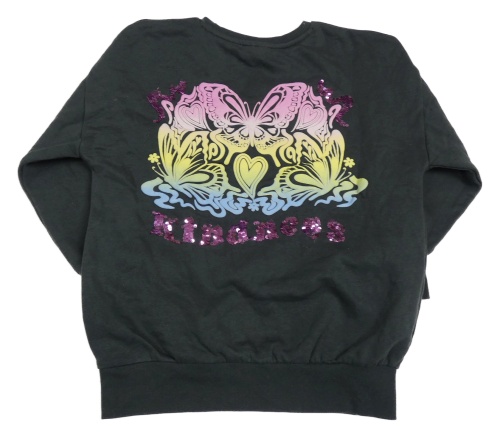 Černošedá mikina s motýlky a květy a překlápěcími flitry Matalan
