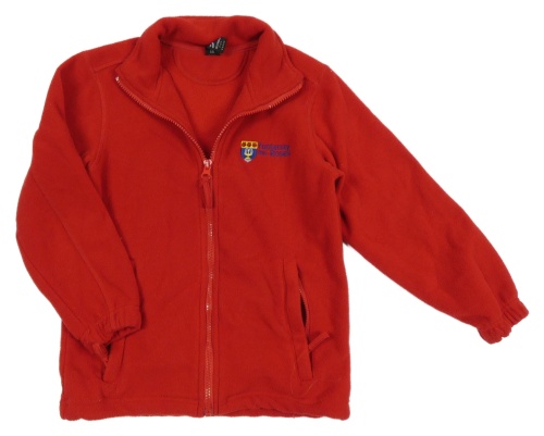 Červená fleecová propínací mikina s nápisem