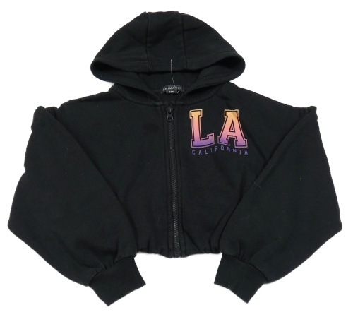 Černá propínací podšitá crop mikina s písmenky a nápisem a kapucí PRIMARK