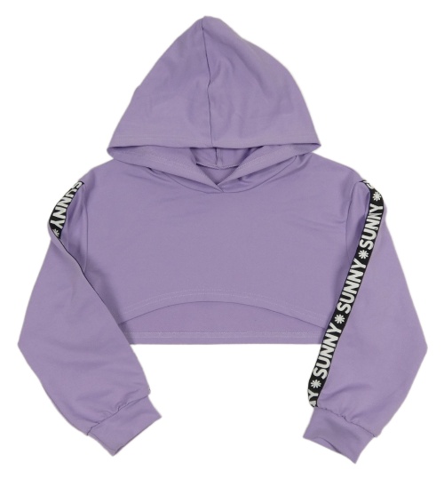 Lila crop mikina s nápisy a kapucí