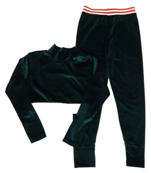 2set - Tmavozelené sametové crop triko + legíny Boohoo
