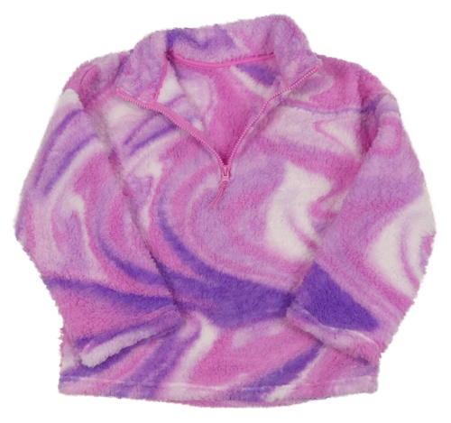 Růžovo-levandulovo-bílo-tmavofialová batikovaná huňatá mikina St. Bernard