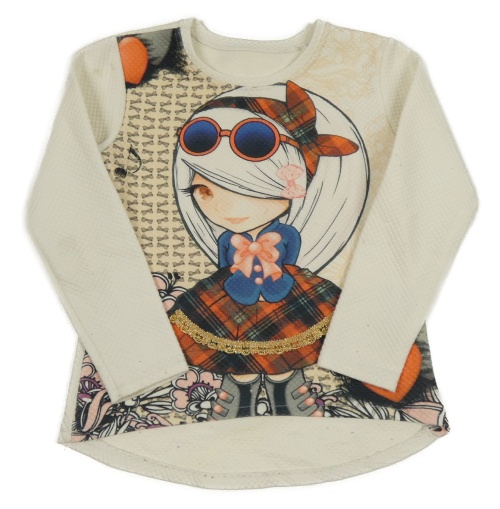 Smetanovo-meruňková prošívaná dlouhá mikina s dívkou