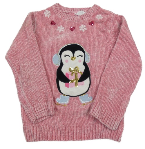 Světlerůžový žinylkový svetr s tučňákem Primark