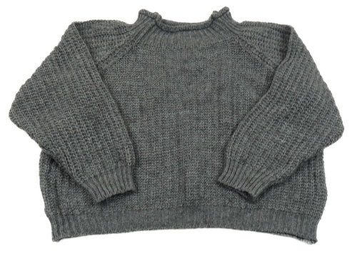 Tmavošedý melírovaný žebrovaný pletený oversize crop svetr