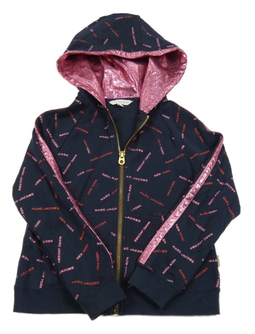 Tmavomodrá propínací mikina s nápisy a kapucí Little Marc Jacobs
