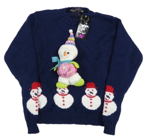 Nové - Tmavomodrý svetr s 3D sněhulákem