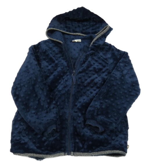 Tmavomodrá chlupatá 3D puntíkatá propínací mikina s kapucí