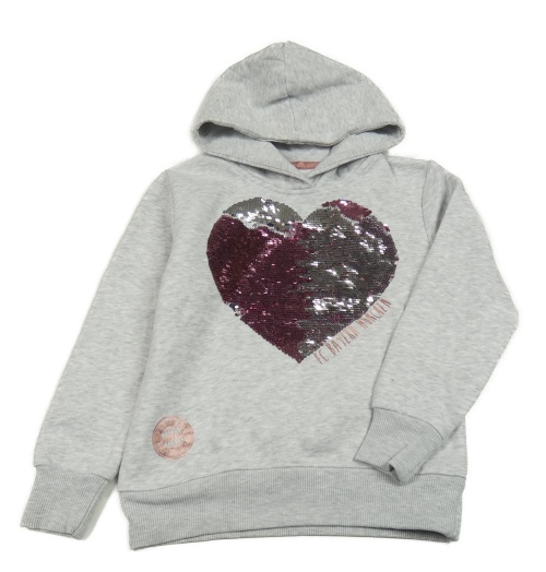 Světlešedá melírovaná mikina se srdíčkem z flitrů a kapucí