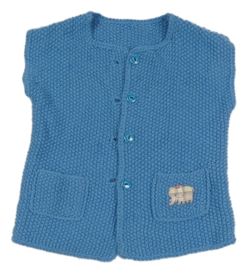 Modrá pletená propínací vesta se slonem